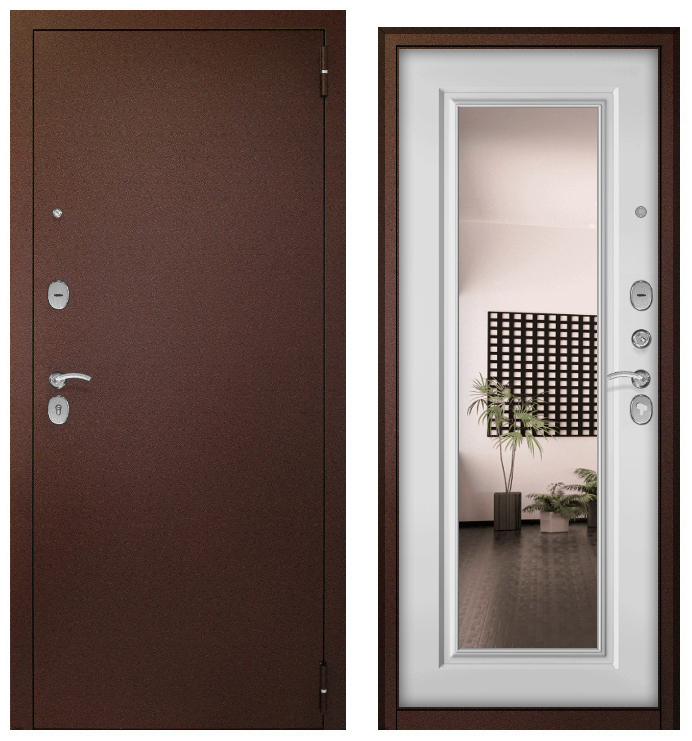 Дверь мет. Беркана (медный антик/МДФ белый матовый, зерк.вставка) (2050*960, левая)