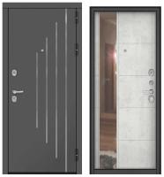 Дверь металл Астерия (МДФ графит софт молдинг/МДФ бетон снежный ЗЕРКАЛО) (2050*860, правая)