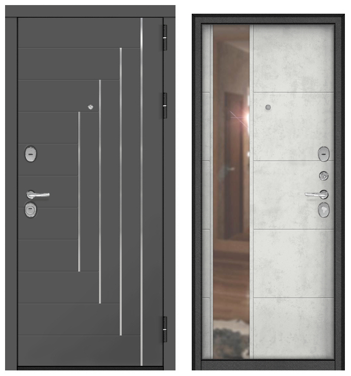 Дверь металл Астерия (МДФ графит софт молдинг/МДФ бетон снежный ЗЕРКАЛО)