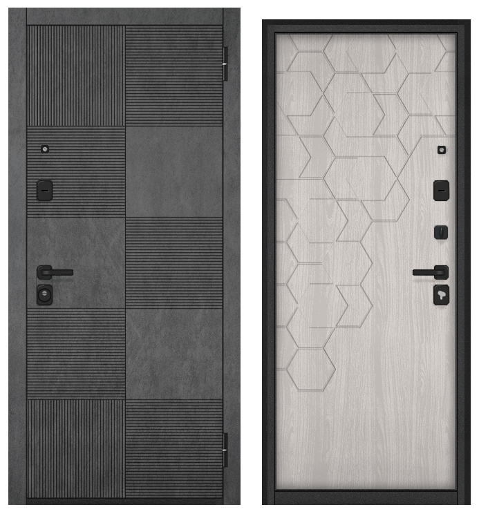 Бульдорс ТРАСТ ЭКО, МДФ бетон темный 9Е-173, МДФ ясень ривьера айс 9Е-184 (2050*960, левая, Ночная задвижка, букле антрацит, черн.фурн)