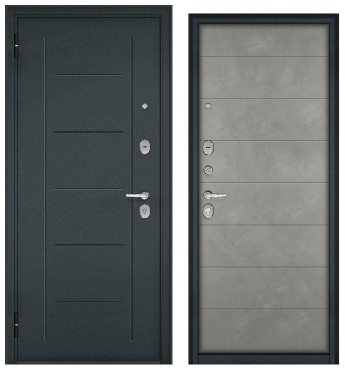 Бульдорс ТРАСТ ЭКО, тисн.РЛ-4, МДФ бетон серый 9E-135 (2050*960, левая, Ночная задвижка, букле графит, хром)