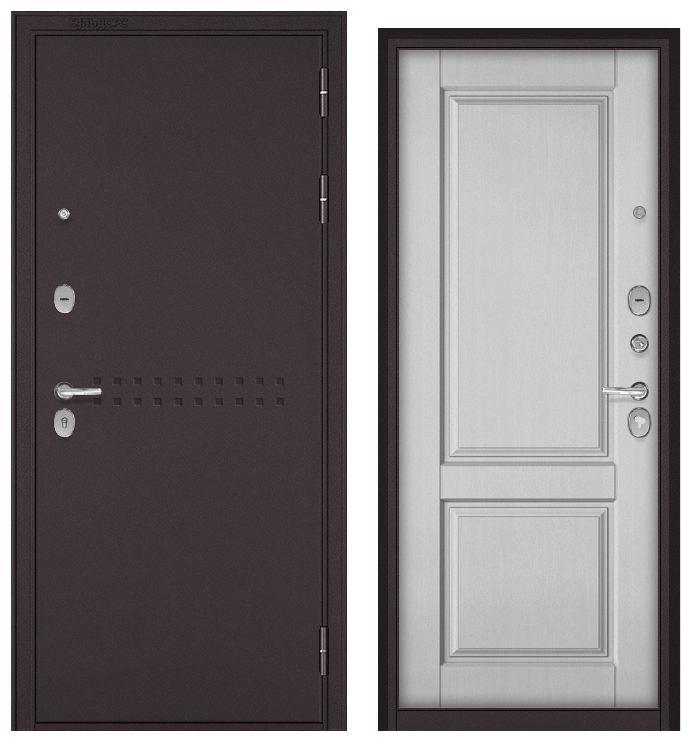 Бульдорс ТРАСТ МАСС, тисн.Р-4, МДФ дуб белый матовый 9СД-1 (2050*960, левая, букле шоколад, хром)