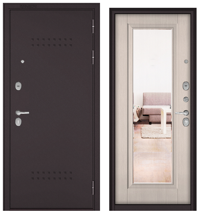 Бульдорс ТРАСТ МАСС, тисн.Р-5, МДФ ларче бьянко 9С-140 зеркало (2050*860, правая, букле шоколад, хром)