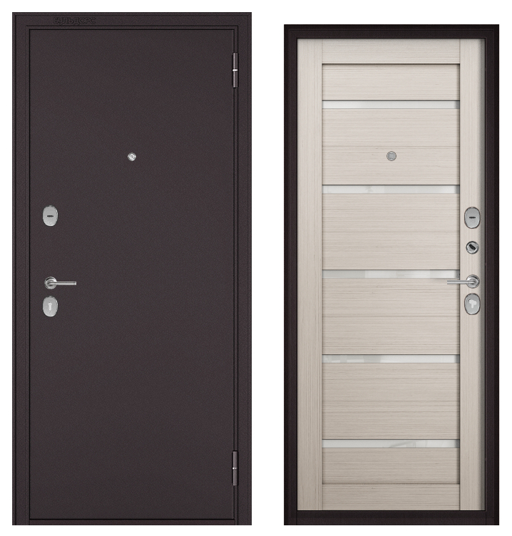 ФЭМЕЛИ ЭКО, МДФ ларче бьянко СР-142 лакобель белое, 2 замка (2050*960, левая, букле шоколад, хром)