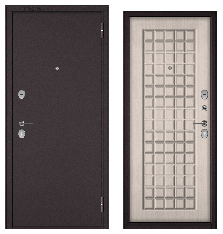 ФЭМЕЛИ ЭКО, МДФ ларче бьянко E-112, 2 замка (2050*960, правая, Ночная задвижка, букле шоколад, хром)