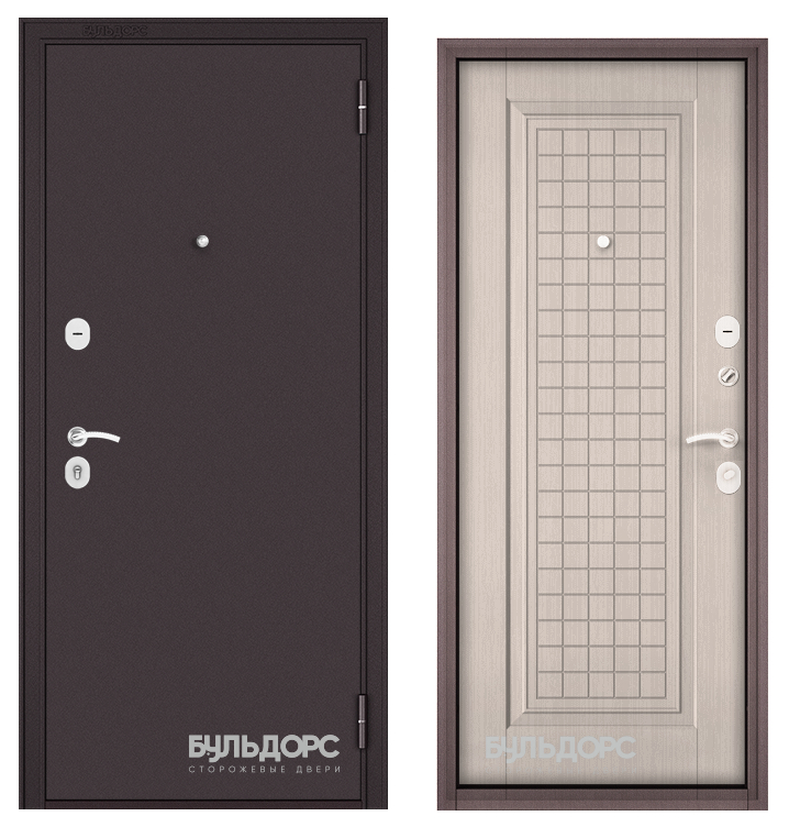 Бульдорс-ЭКОНОМ-70 Пенополистирол, букле шоколад, ларче бьянко Е-212, 2 замка, хром (2050*960, левая)