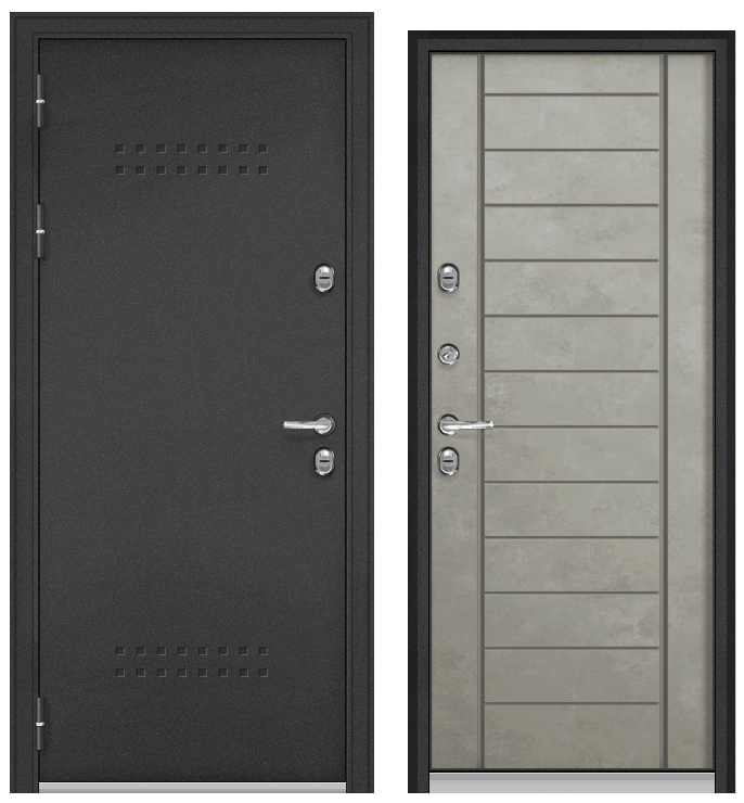 ТЕРМОРАЗРЫВ (СПЛИТ) MP, тисн.Р-5, МДФ бетон серый 10ТС-137 (2050*880, правая, нержавеющий порог, букле антрацит, хром, термо)