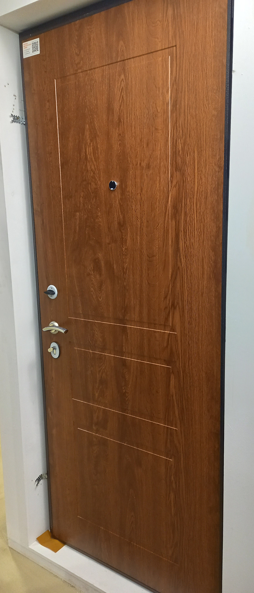 ХОУМ ЭКО ВНУТР ОТКР MP, МДФ дуб золотой 6ВД-2 (внутреннего открывания), 1 замок (2050*960, правая, Ночная задвижка, букле шоколад, хром)