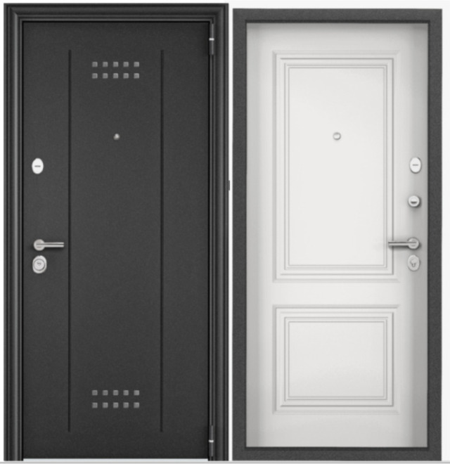 Дверь металл ТОРЭКС ДЭЛЬТА ПРО MP, т-сер букле графит ДЛ-2, ПВХ Дуб белый матовый, D27, хром (2050*860, R, правая)
