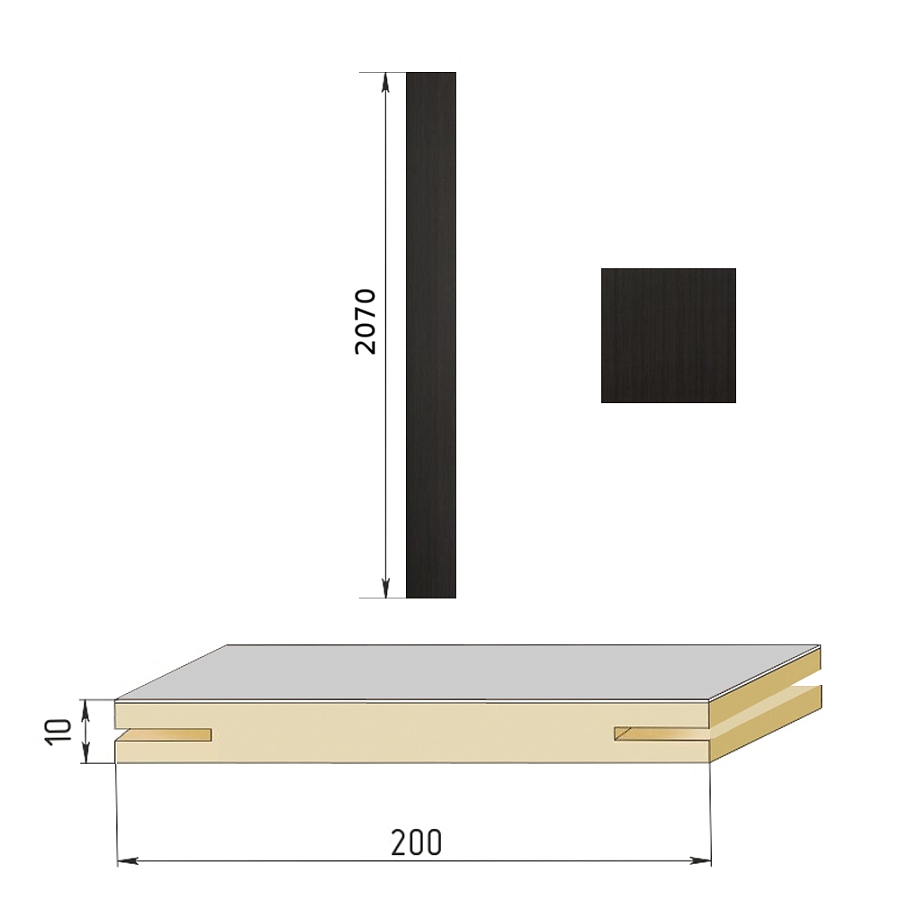 Добор телескопический (1шт* ДЛИНА 2,07м) для Бульдорс, МДФ шириной 200мм, покрытие ПВХ (мелинга венге)