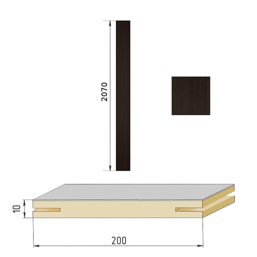 Добор телескопический (1шт* ДЛИНА 2,07м) для Бульдорс, МДФ шириной 200мм, покрытие ПВХ (мелинга венге)