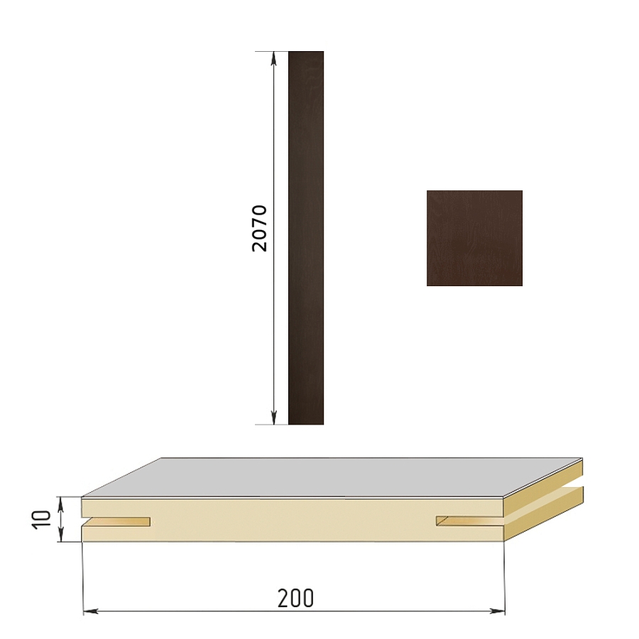 Добор телескопический (1шт* ДЛИНА 2,07м) для Бульдорс, МДФ шириной 200мм, покрытие ПВХ (ларче темный)