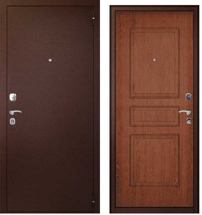 Тульские двери А3 Монолит НОВ 70мм, хром (антик медный, МДФ Золотой дуб) (1900*960, L, левая)