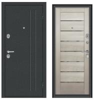 Тульские двери Б31 СЕУЛ Букле графит, Дуб дымчатый ,Царга, черное стекло,три контура, хром (2050*860, левая)