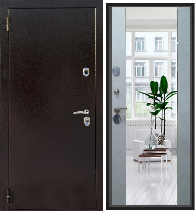 Тульские двери Б35 Термо СТАР(медь, МДФ 12мм бетон снежный, ЗЕРКАЛО, 2петли,1,2мм, хром) (2050*960, левая)