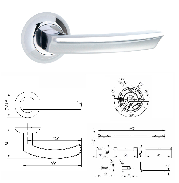 Ручка дверная 0593 (SIGMA) (хром, квадрат 140 мм)