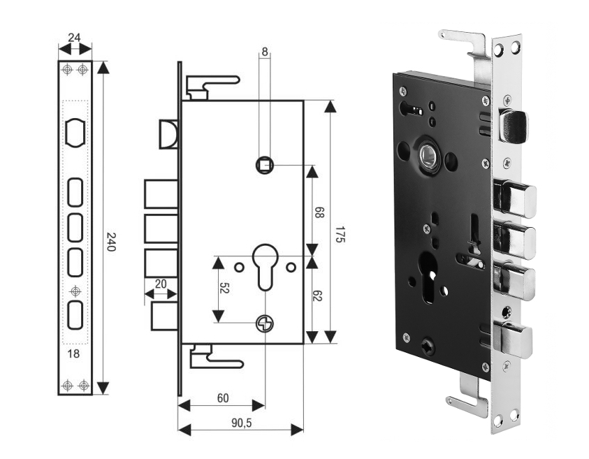 рекомендован для установки в металлическую дверь с толщиной профиля не менее 60мм.