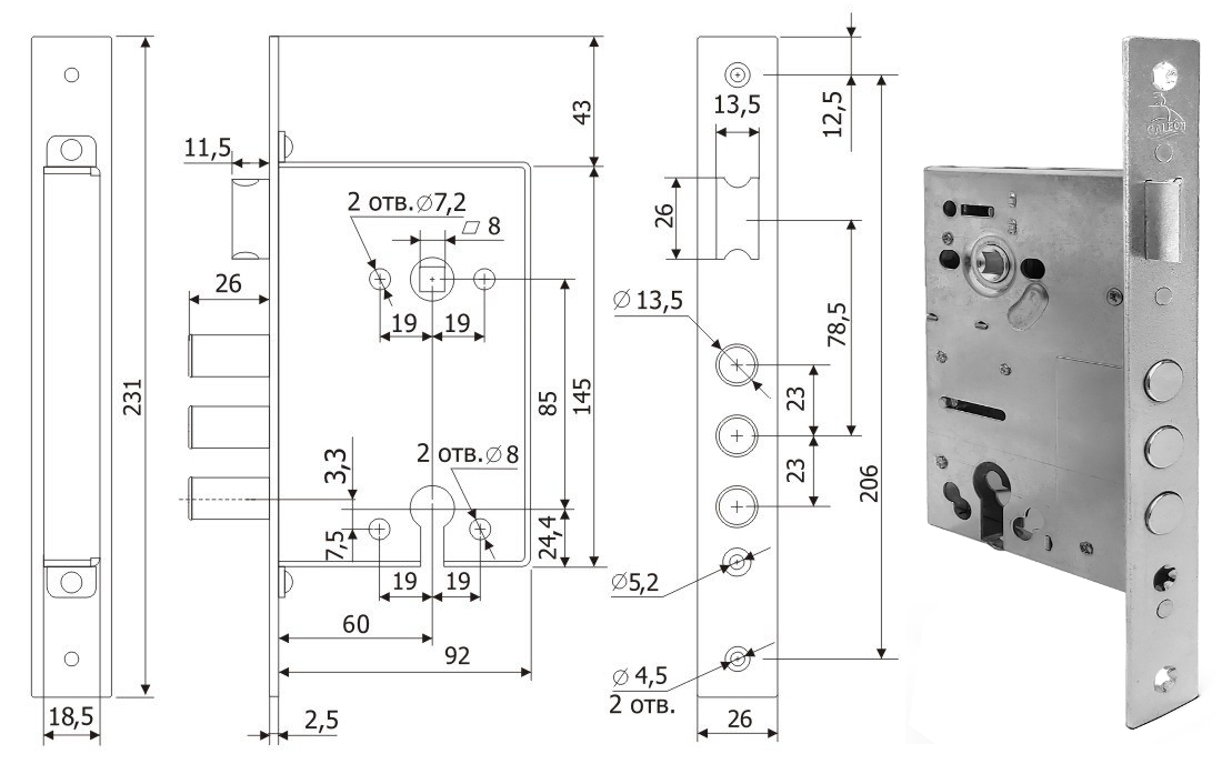 Замок врезной цилиндровый  Galoc  (для Тульских дверей аналог Бордер ЗВ4-31/55)