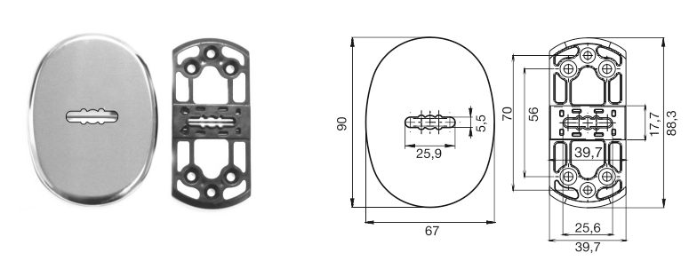 Накладка БОН овальная (сувальдный.)  (хром) (шторка)