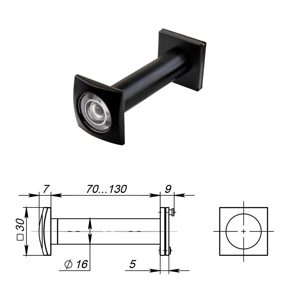 Глазок DV-Q 4/130-70/Z (VIEWER 4 DVQ) BL (квадрат, черный)