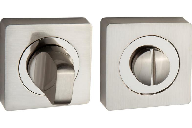 Завертка выполнена в стилистике дверных ручек, имеет тот же цвет, аналогичную форму розетки и снабжена удобным поворотным вертушком.