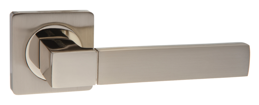 Дверная ручка Песто на квадратной розетке (никель матовый/никель блестящий, арт. INAL 521-02 SN/NP)