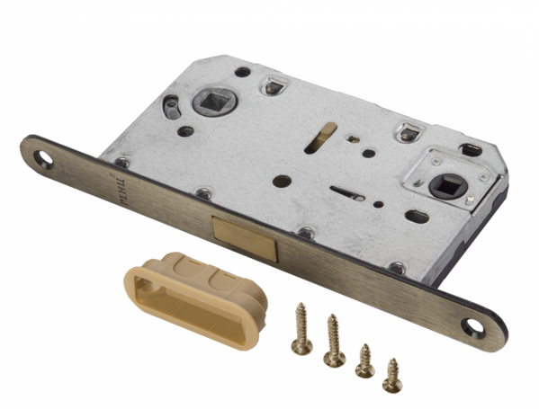 Защелка сантехническая РЕНЦ с корпусом из оцинкованной стали, межосевое расстояние 96 мм, бэксет 50 мм, снабжена отверстиями под стяжные винты.