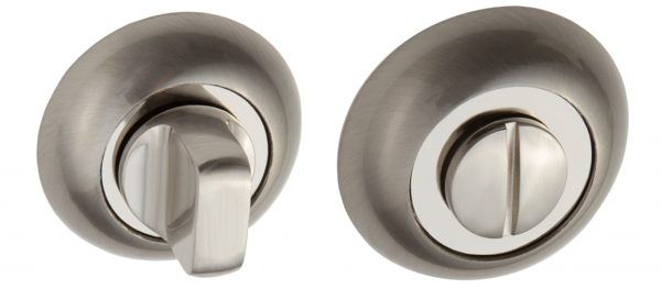 Завертка выполнена в стилистике дверных ручек, имеет тот же цвет, аналогичную форму розетки и снабжена удобным поворотным вертушком.